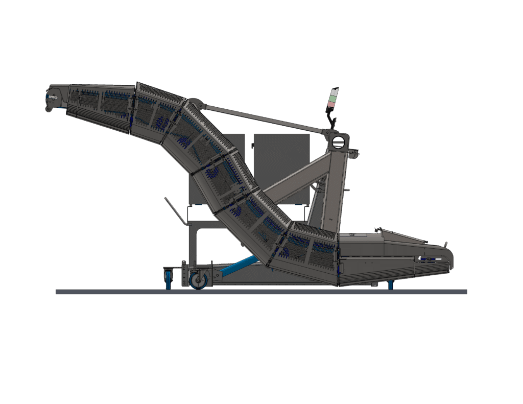 L’option « système d’abaissement » permet d’abaisser le convoyeur grâce à un vérin hydraulique géré par l’automate. L’interface intuitive de l’automate permet de monter et descendre rapidement le convoyeur sans effort. Des positions sont pré-enregistrées selon les opérations : nettoyage, maintenance, production.